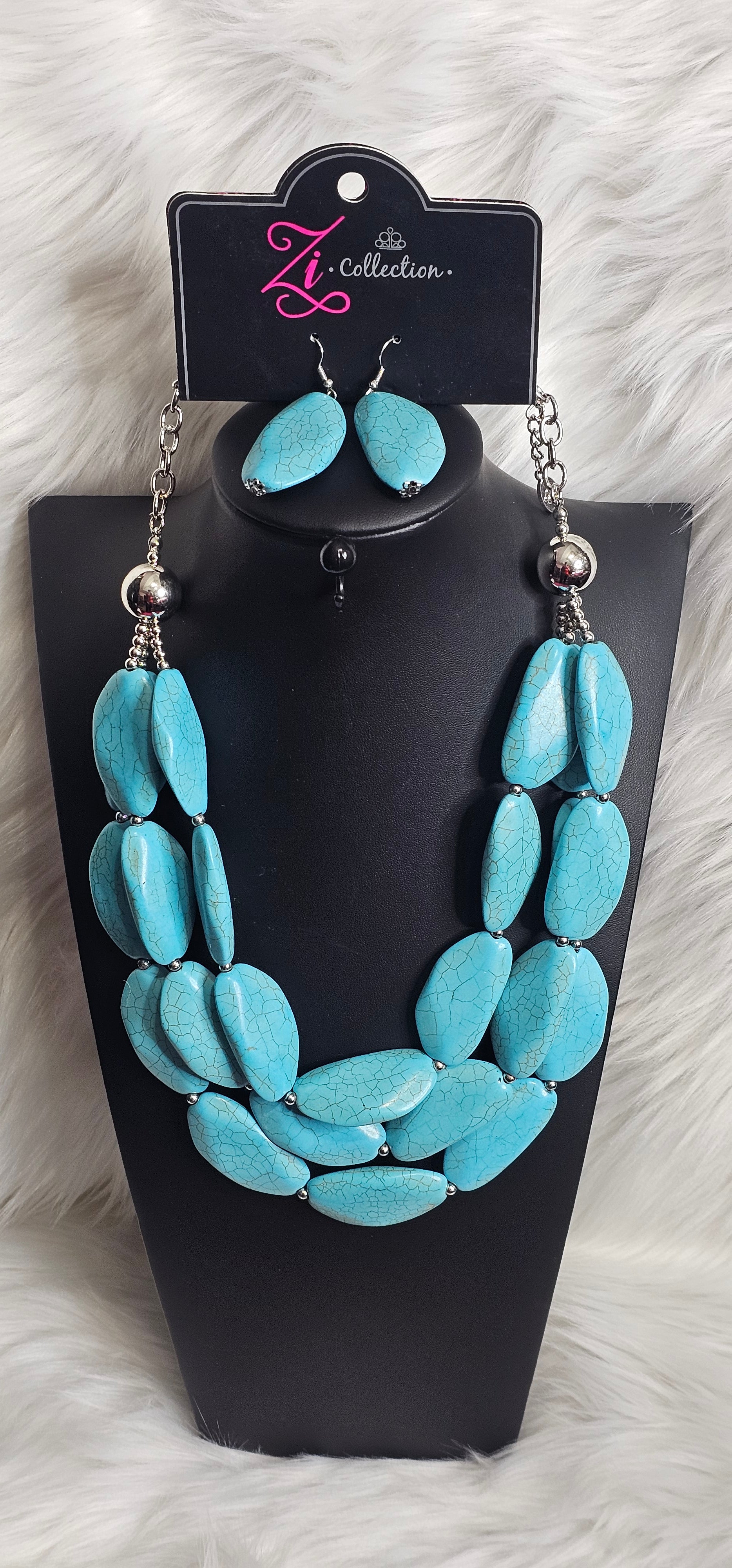 Paparazzi Accessories Authentic - 2020 Zi Collection Necklaces three groundbreaking tiers of faceted turquoise stones and dainty silver beads layer down the chest, creating bold layers. The earthy stones combine flawlessly with strands of silver chain, pioneering the way for the trendsetters everywhere. Features an adjustable clasp closure.