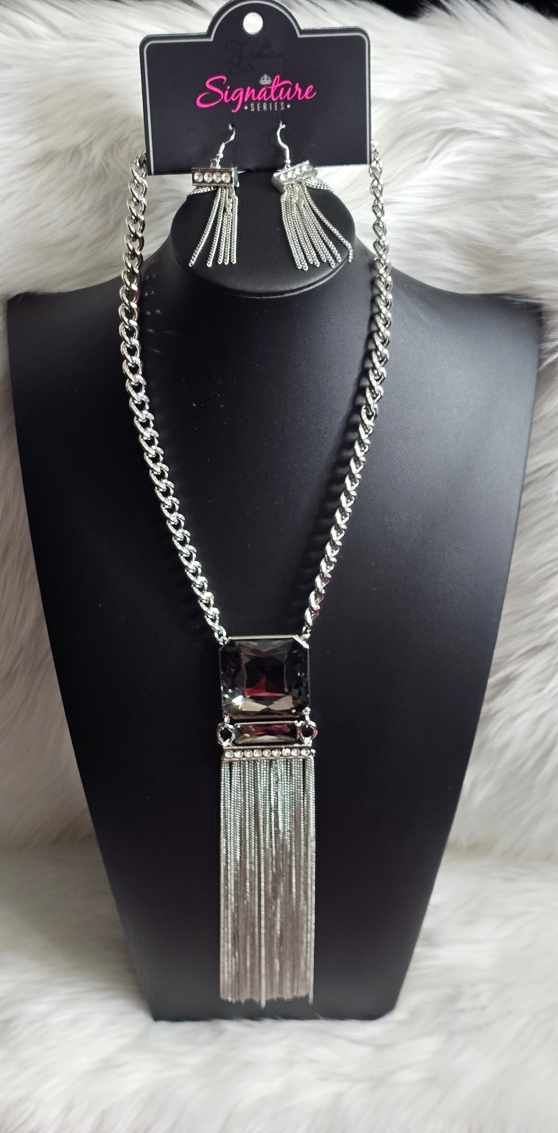 Paparazzi Accessories - The Hope - 2022 Zi Collection Necklace a dramatically oversized, smoky, Asscher cut gem sits boldly at the bottom of a thick silver chain, creating a majestic focal point. An emerald cut gem in the same smoky hue connects to the bottom of the large centerpiece, followed by a thick silver bar lined with sparkling white rhinestones. The jaw-dropping frames stack into a mesmerizing pendant that gives way to a stream of silver chains, captivating onlookers with every swish of its spellbinding sashay. Features an adjustable clasp closure.