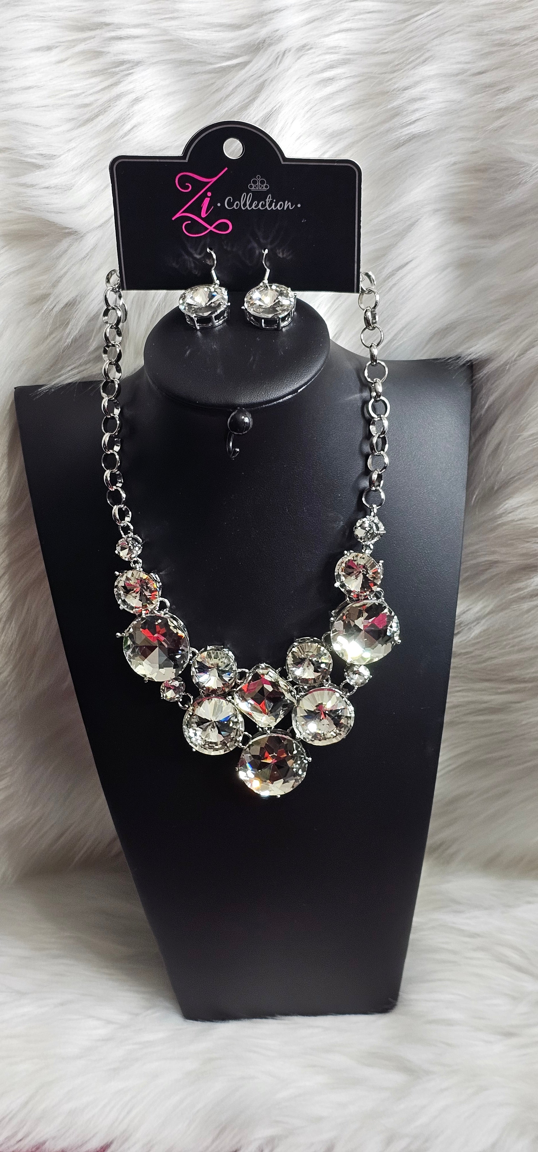 Paparazzi Accessories Unpredictable - 2020 Zi Collection Necklaces varying in size and shape, a dramatic collision of oversized white rhinestones connect into an unapologetically glamorous statement piece below the collar. Attached to chunky silver links, the breathtaking display of clustered gems radiates confidence. Features an adjustable clasp closure.
